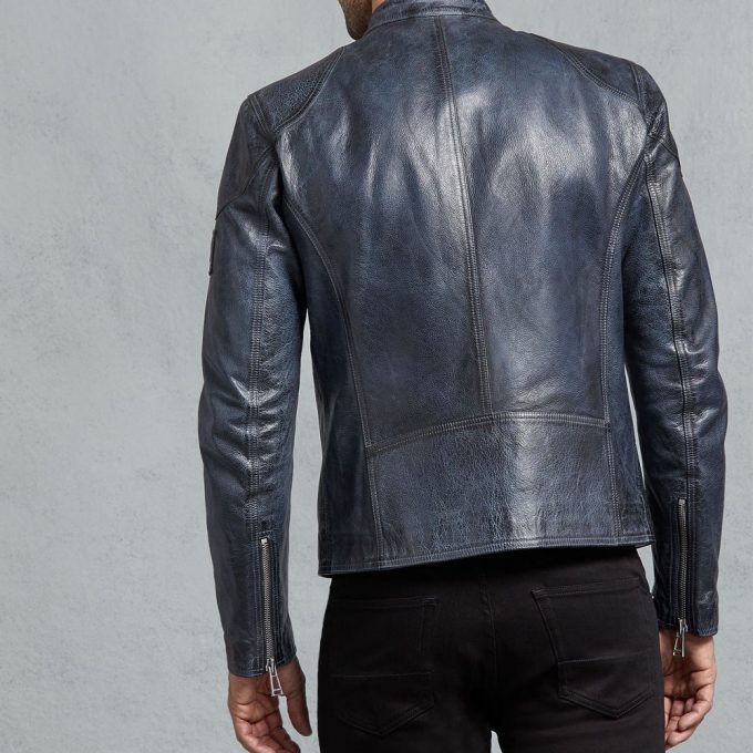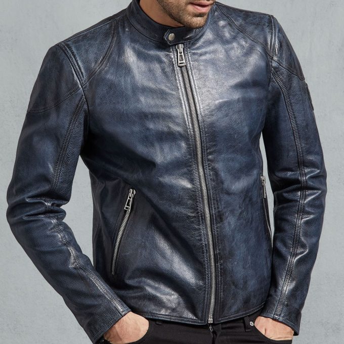 Bandit Cafe Racer Jacket in Lagoon Black Hand Waxed Leather New for Spring/summer 2019 is this men’s café racer jacket, in the lagoon with a black wax buffered finish to the signature, hand-waxed leather, which accentuates its vintage. With a classic press-stud closure to the collar and two side pockets with zip fastenings, the jacket also features shoulder reinforcements that bring function to the fore in signature style. Additional detailing includes an exposed center zip fastening and a leather Belstaff patch on the left sleeve.