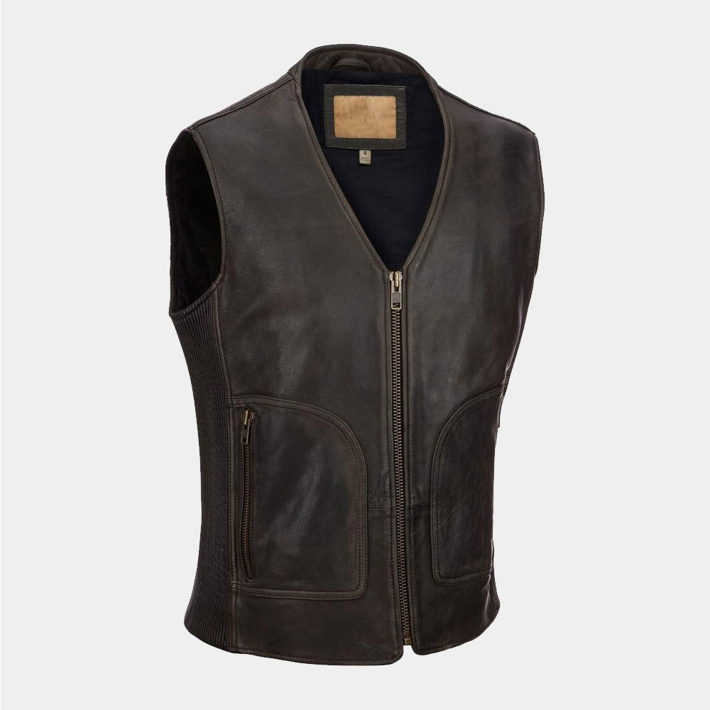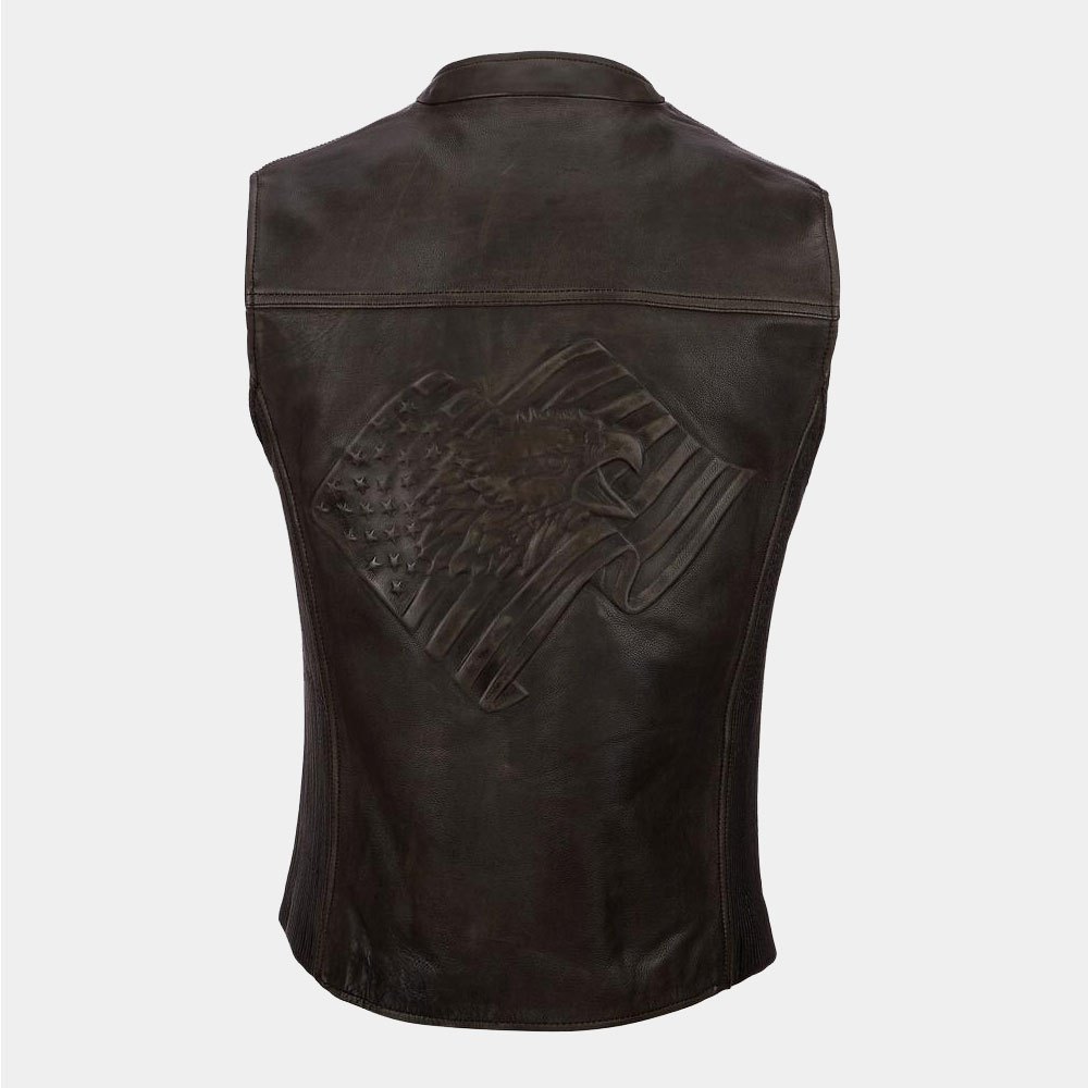 Leather Vintage Embossed Flag Leather Vest-Wilsons Replica