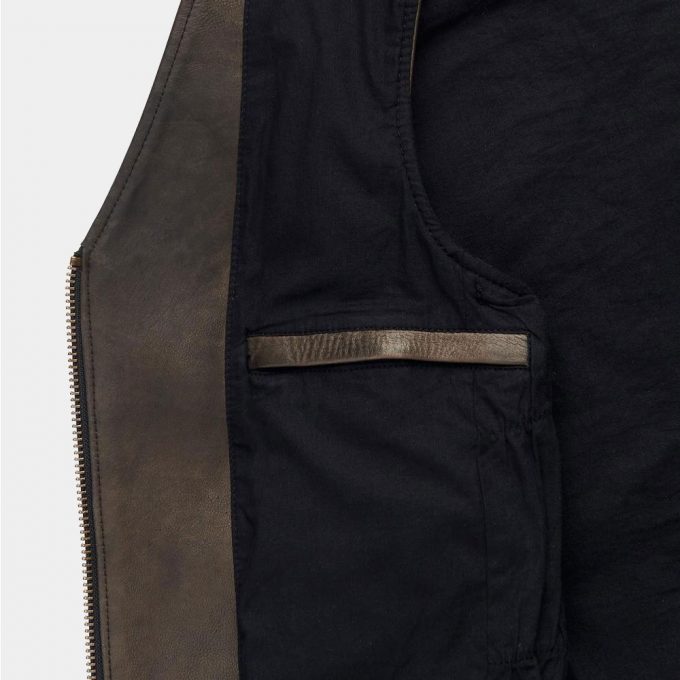 Worn-in genuine leather and an embossed flag combine to give this rugged vest from Wilsons Vintage a cowboy-cool retro vibe. All our Wilsons brand jackets are timeless basics with a comfortable fit.